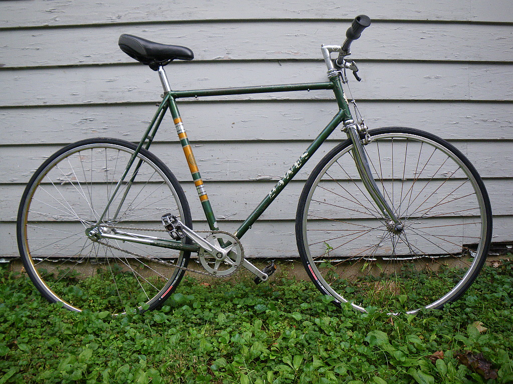 I found this 1970’s-era Dawes racing bike in a trash pile near my house. Knocked on the door and yes, they intended to throw it out. I was on my mountain bike, so I grabbed the old bike’s gooseneck and towed it home.