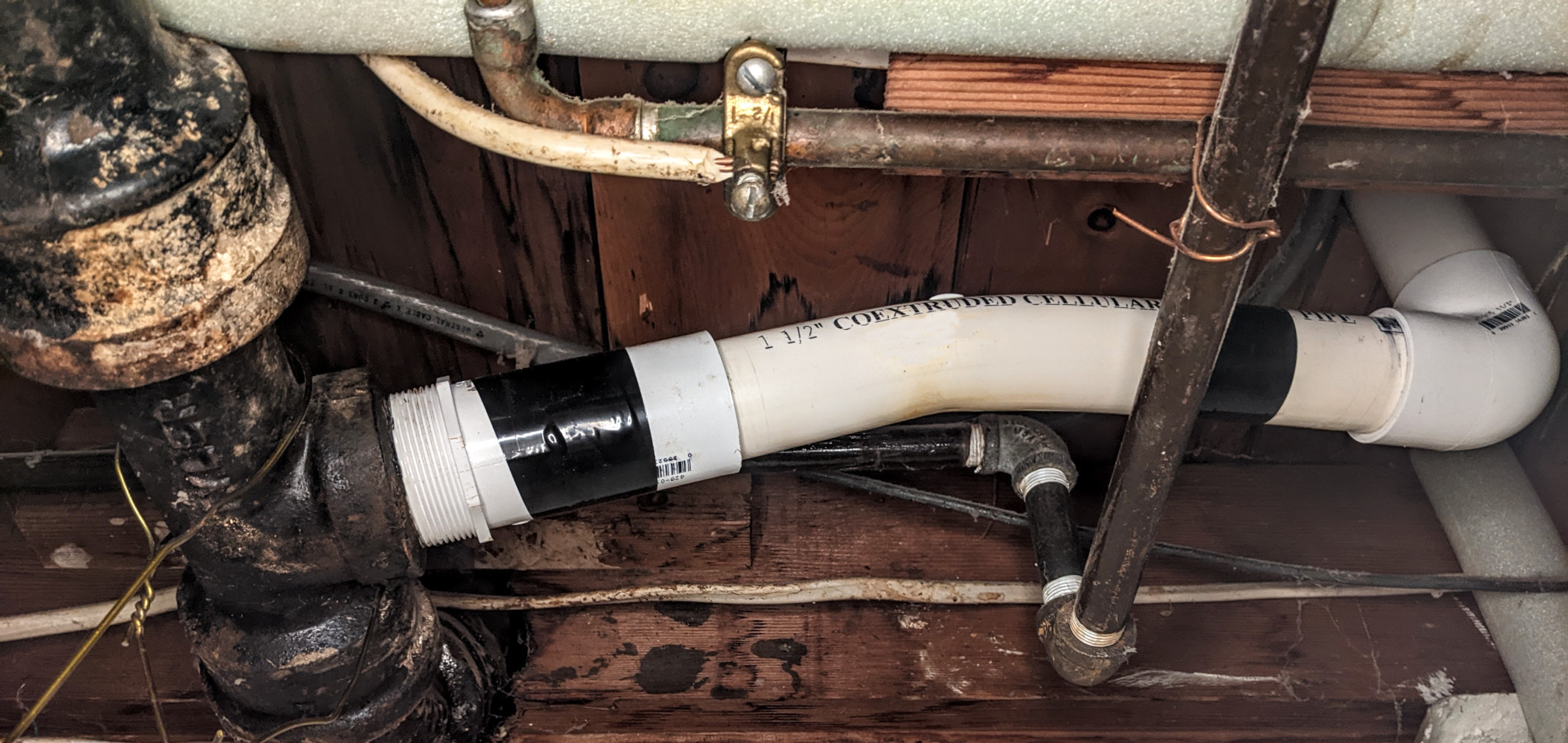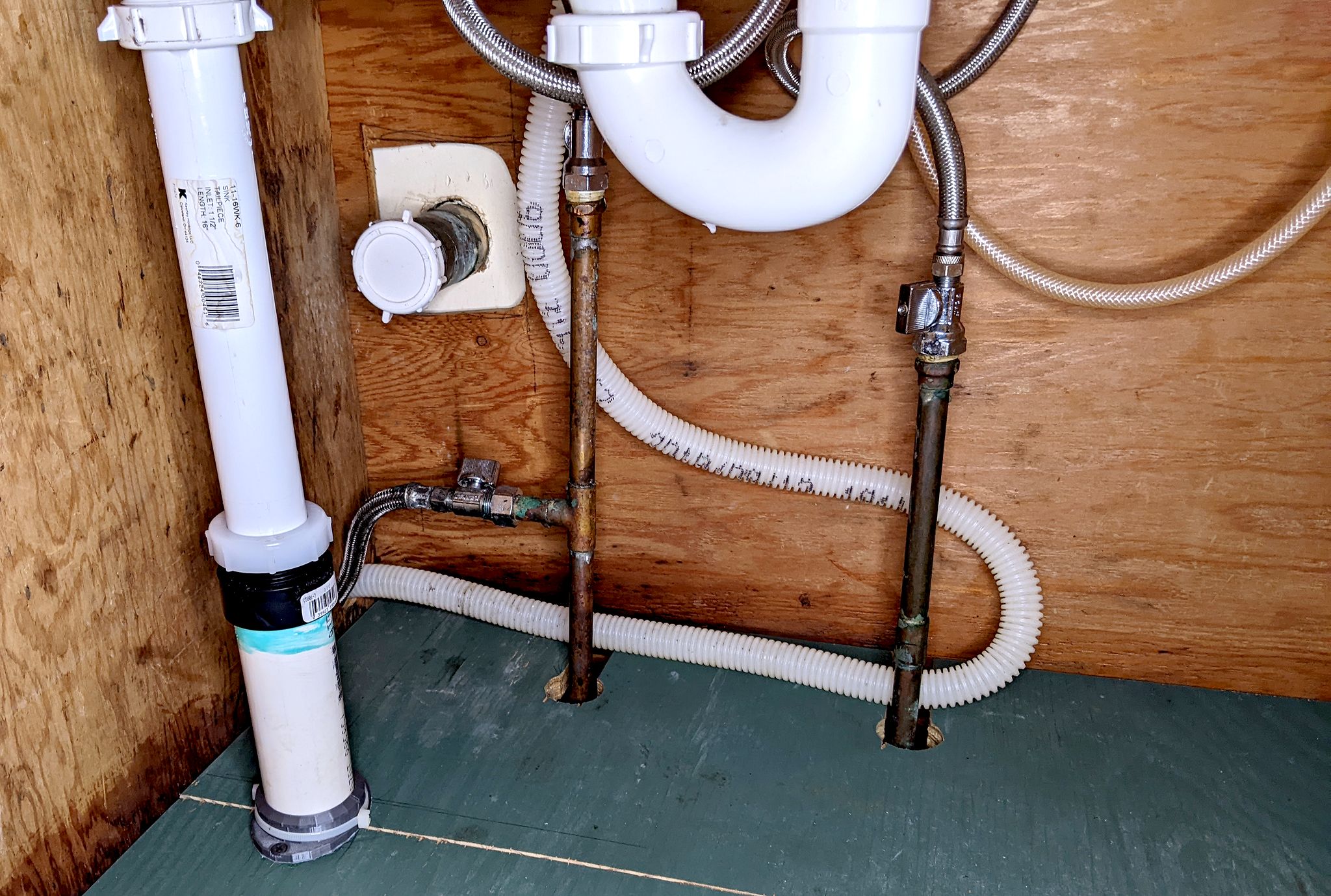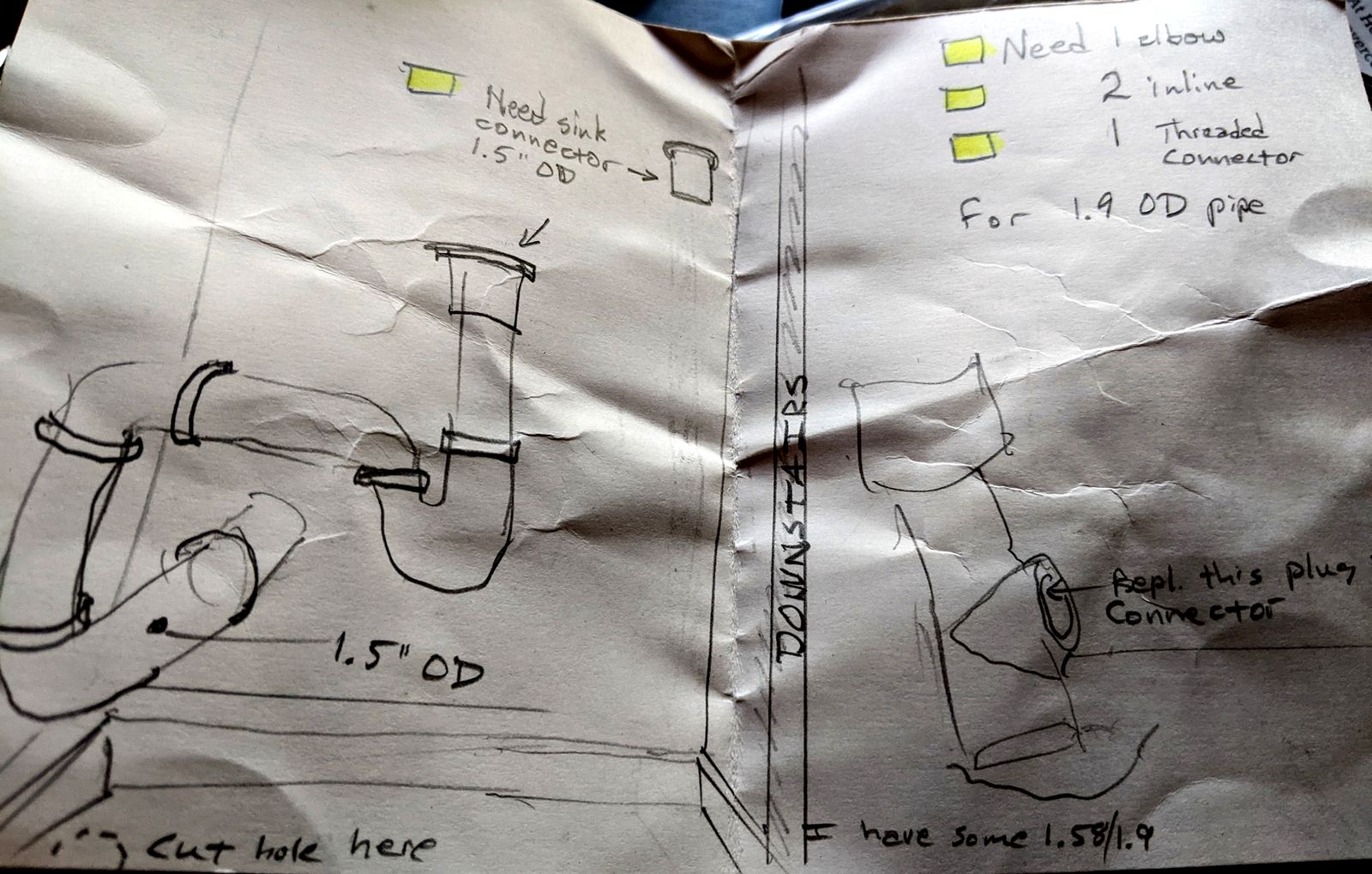 THE PLUMBING TASK from last week was to clear up the sink drain. But there was a problem. The drain was routed such that there was NO way to get a snake through it. Nothing I did would restore flow.