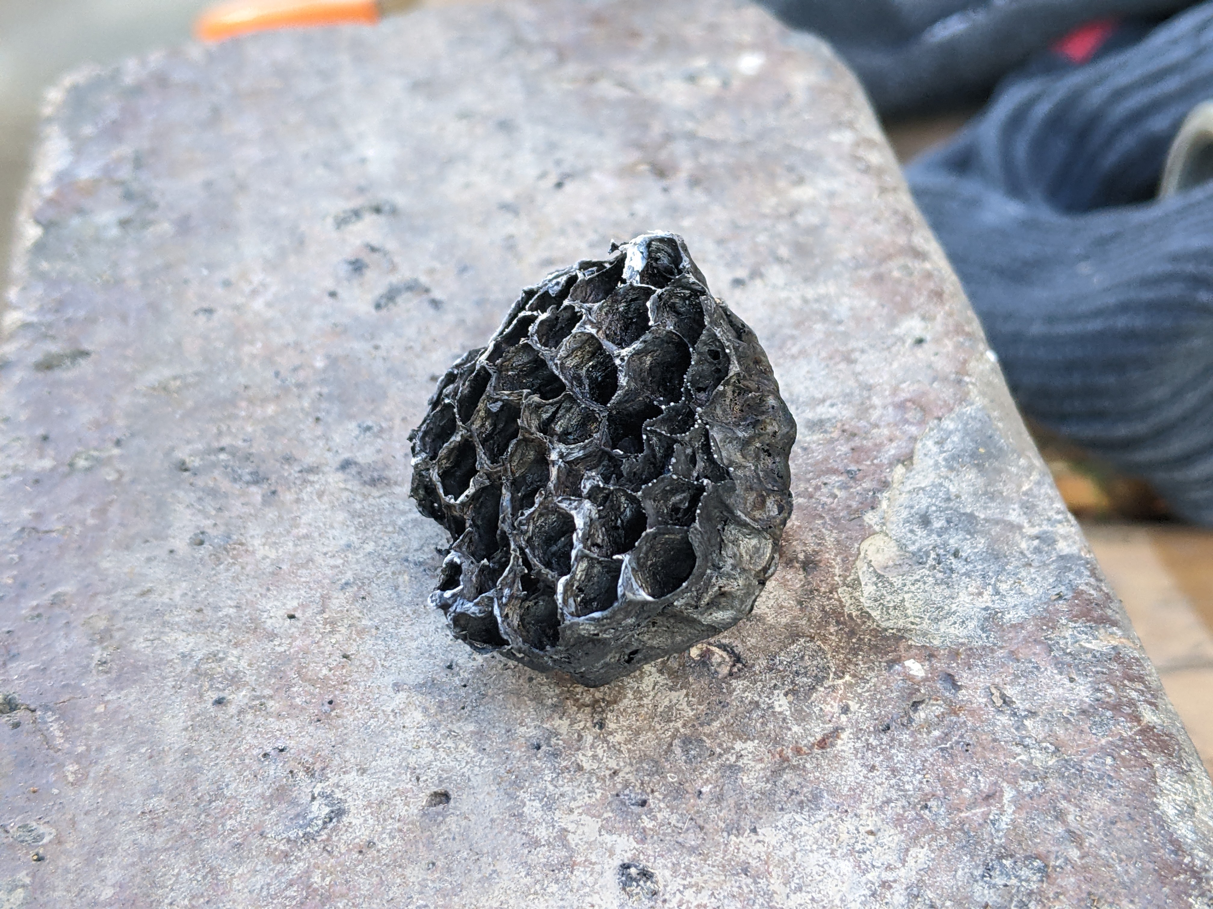 OK one last thing to try. You’d think such a light structure made of plant fibers would burn easily, right? THIS is after nearly a minute on a brick in the flame of a butane torch. It eroded a bit, but as soon as I took the torch off it stopped burning. The remaining part held its form but lost most of its strength.